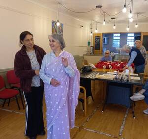 What a lot of variety; getting the poppy display ready for November, designing cards and making and trying out a sari. All in a morning’s meeting!